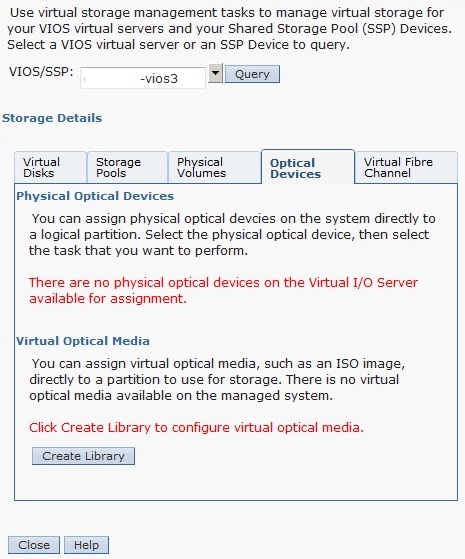 Select VIOS which will be hosting a repository and click Optical Devices, and Click Library