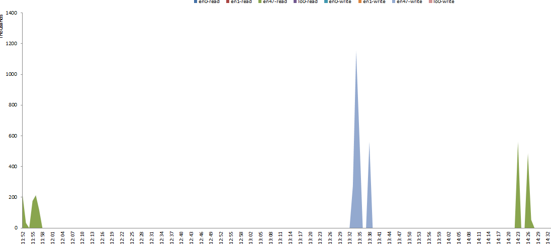 The first graph shows the speed of the SEA port which handles the ‘LPM’ VLAN. In this setup I don’t have Jumbo Frames enabled, and MTU is set to default (1500)