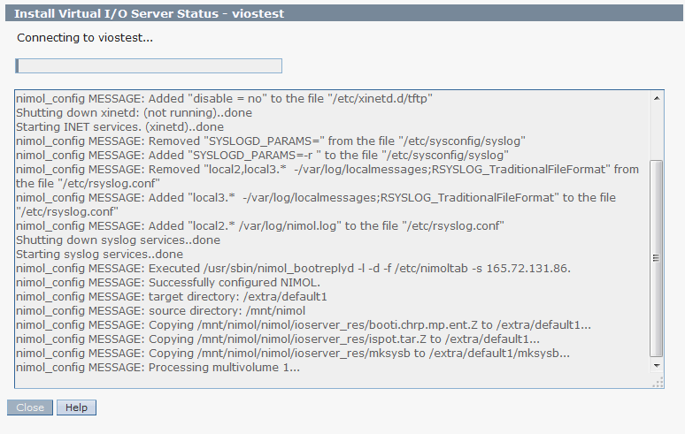 6. The installation process starts. It will do everything what is necessary to install the VIOS.