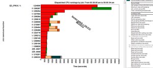 I did a query – show me the jobs which consumed CPU the most. On the left side, you see job ED_PROC was the biggest consumer of CPU for entire day, and it used ~9500 CPU sec. On the right side, the same report a week later, again the same job was the biggest consumer and it used about ~7200 CPU sec.