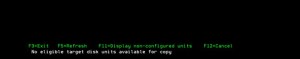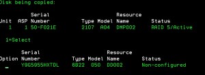 The system has 3xLUNs, the loadsource disk is 71Gb big, and I’m trying to replace by 40Gb LUN. As you can see below, the copy operation resulted in error. The smaller disk is not eligible to be a new loadsource which is reported as no target disk. I performed this exercise on a test system running V7R3.
