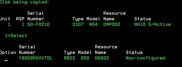 Start the drums now, this is a big moment….. Either you wasted the time or data got shrink and the Copy disk unit data menu in the DST offers coping data to a (smaller) disk.