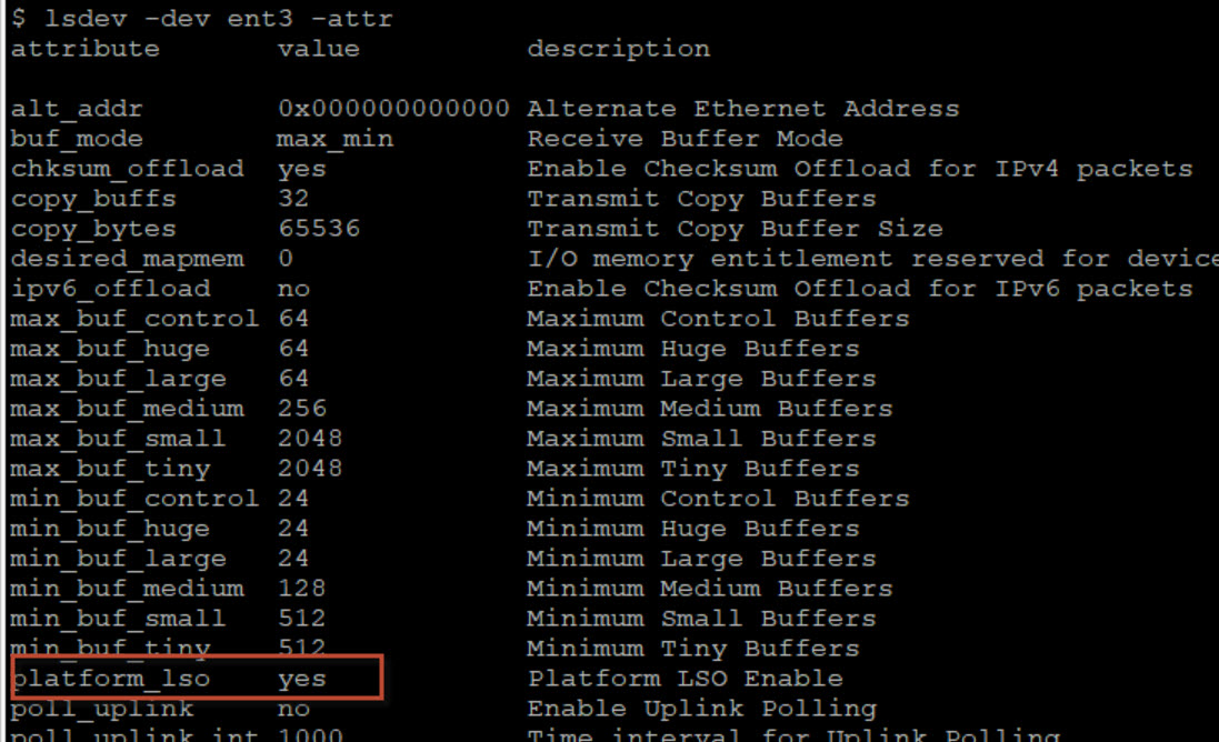 - Modify parameter chdev -l ent7 -a platform_lso=no, chdev -l ent5 -a platform_lso=no