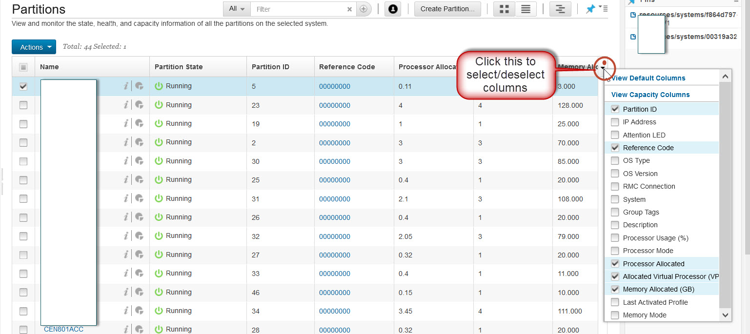 I have never found information about IP address or Attention LED useful, so let’s kick out these, and insert information about Allocated CPU and Virtual CPU. You can do it, by clicking small icon on the left and display Capacity Columns. Select/Deselect what you like.